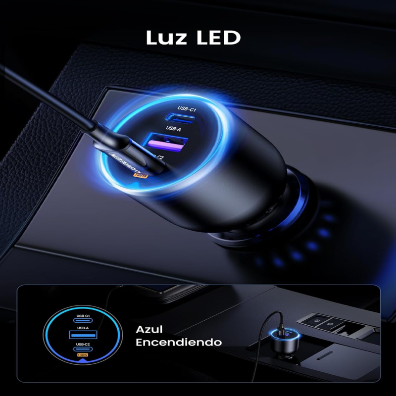 Cargador de Coche de Alta Potencia de 130W: UGREEN 130W cargador de coche usb c es compatible con casi todos los dispositivos, desde computadoras portátiles hasta teléfonos inteligentes, GPS y otros dispositivos. Con este cargador de automóvil USB-C de alta potencia, puede convertir su coche en una oficina móvil, lo que hace que su viaje sea más eficiente