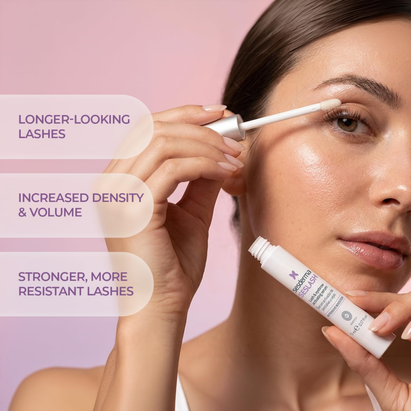 ¡Di sí a las pestañas XXL! SESLASH, el sérum activador de pestañas y cejas, es el secreto de unas pestañas infinitas y unas cejas definidas.