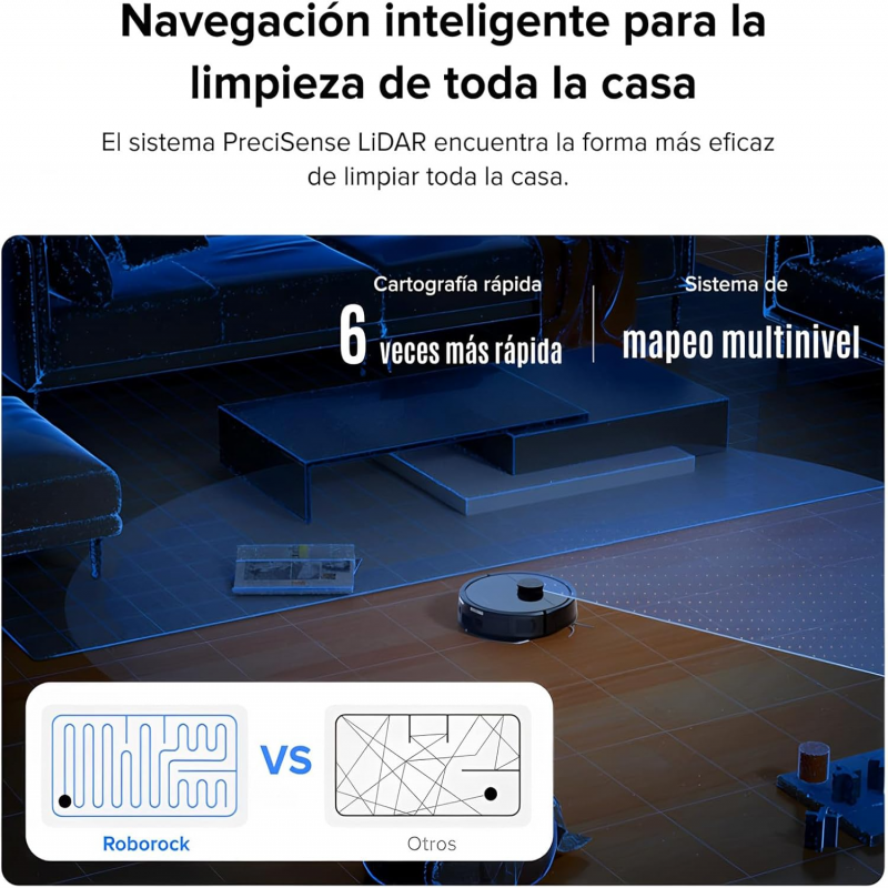 Navegación LiDAR de precisión con mapeo inteligente: El escaneo láser LiDAR de 360° permite que la aspiradora y trapeador Roborock cree mapas detallados de hasta 3 niveles del hogar con una velocidad hasta 6 veces más rápida que los métodos tradicionales. Planifica rutas óptimas, evita obstáculos y cubre todos los rincones de tu casa.