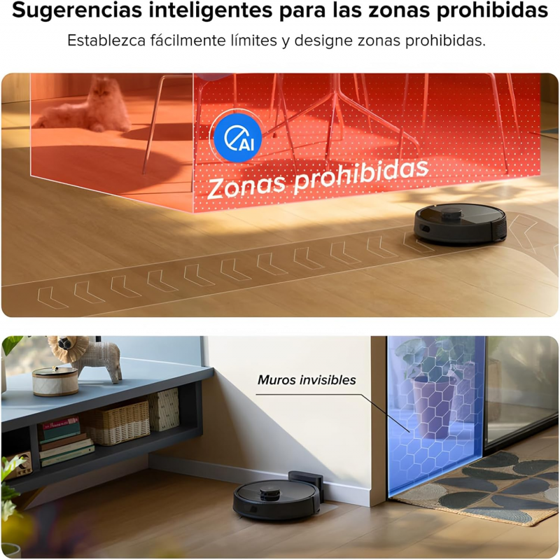 Control inteligente total desde la app Roborock: Gestiona la limpieza de tu robot aspiradora desde tu celular: configura horarios, ajusta la potencia de succión, selecciona zonas prohibidas o adapta niveles de fregado. Todo desde una interfaz intuitiva, para que tengas el control incluso cuando no estás en casa.