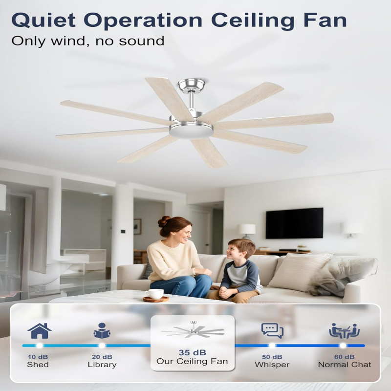 Motor de CC de Bajo Consumo: Equipado con un motor de CC de alta eficiencia, este ventilador de techo de 60 pulgadas sin luz garantiza una circulación de aire óptima y consume menos energía en comparación con los motores de CA tradicionales. Esta función de ahorro de energía ayuda a reducir los costes de electricidad, lo que lo convierte en una opción económica para cualquier espacio interior o exterior cubierto.