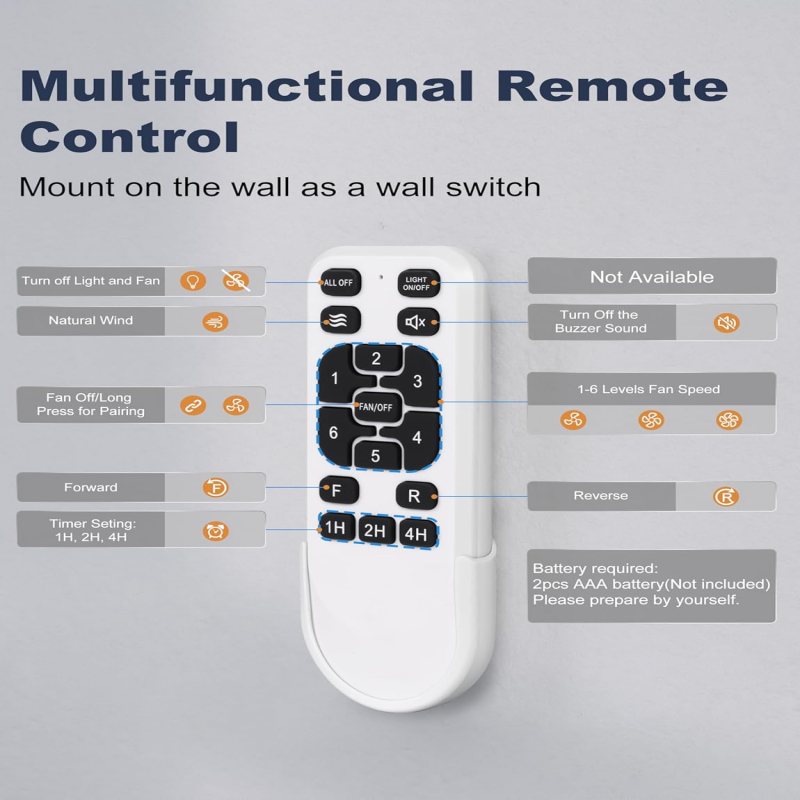 OPCIÓN DE CONTROL DE 3 VÍAS: Disfrute de la máxima comodidad con este ventilador de techo de 60 pulgadas sin luz. Contrólelo mediante el mando a distancia incluido o la aplicación para smartphone para ajustar la velocidad, el tiempo y la dirección. También es compatible con interruptores de pared estándar para una sencilla función de encendido/apagado (Nota: el interruptor de pared solo controla el encendido/apagado del ventilador).