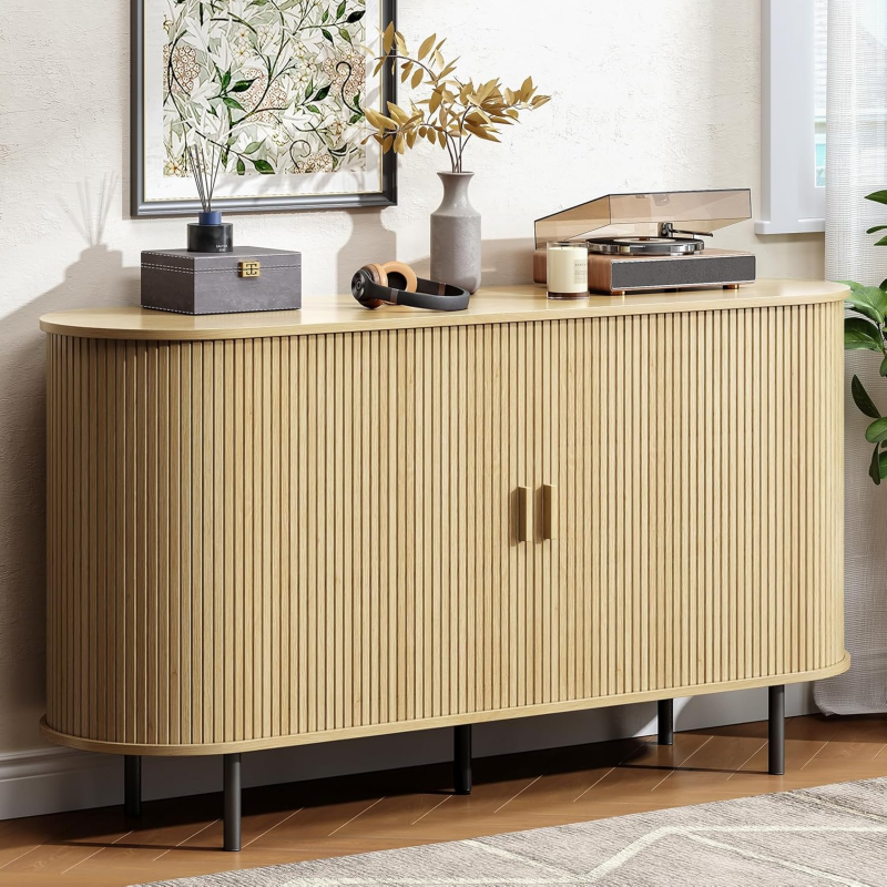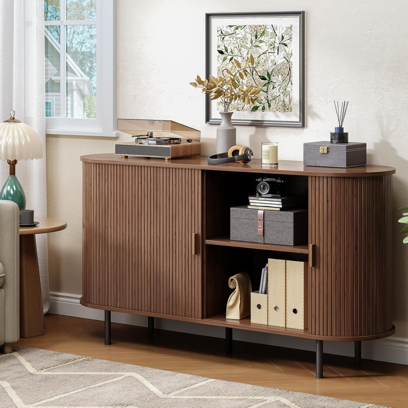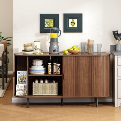 DISEÑO DE PUERTA CORREDERA: Este Aparador Buffet de 55" cuenta con un mecanismo de puerta corredera de funcionamiento suave que ahorra espacio y ofrece acceso conveniente a los artículos almacenados. Las pistas deslizantes suaves y sin ruido garantizan un funcionamiento sin esfuerzo y una larga durabilidad. Perfecto para zonas de comedor compactas, entradas estrechas o cocinas acogedoras.