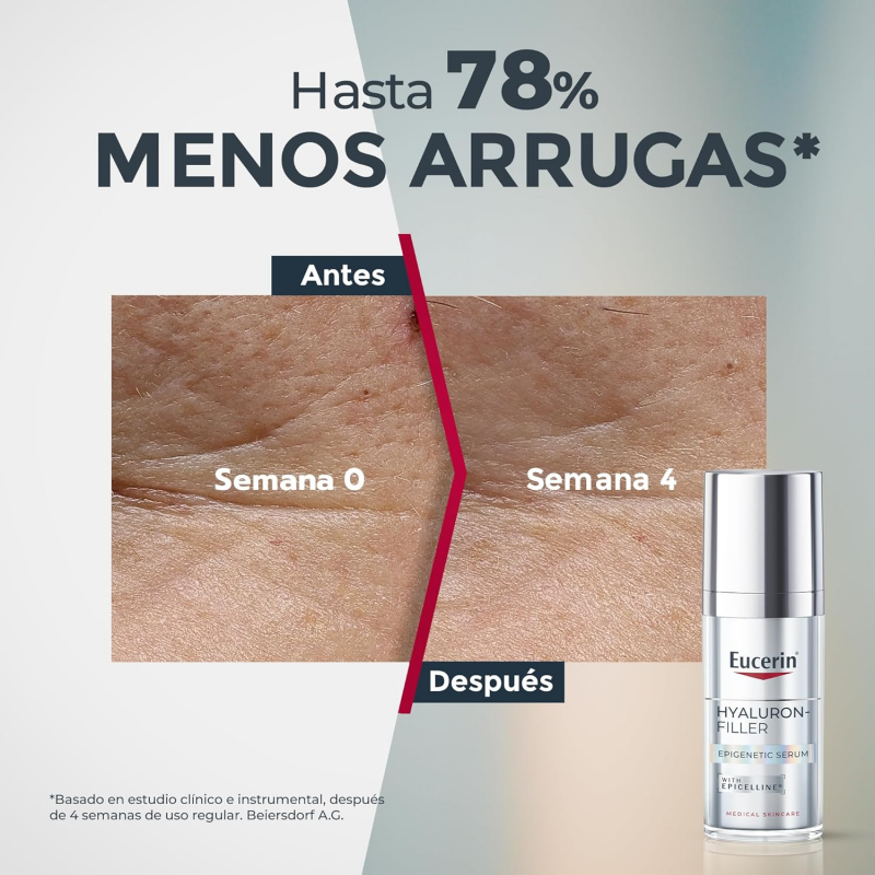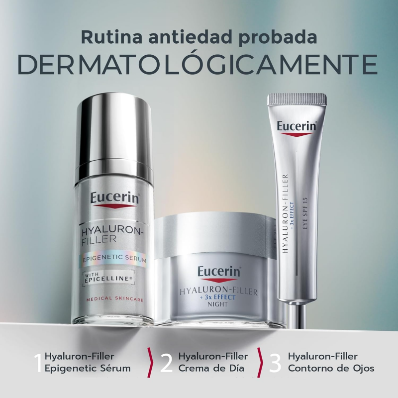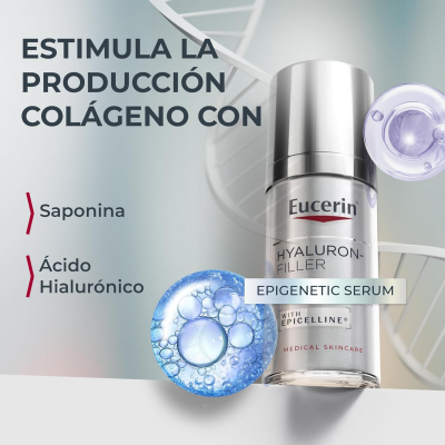 Eucerin Hyaluron Filler Epigenetic Serum Anti-edad con Epicelline, innovadora solución anti-edad. Ayuda a reducir visiblemente los 10 signos de la edad gracias a sus ingredientes clave. El envejecimiento de la piel se ve acelerado por el estilo de vida y los factores ambientales cambiando los patrones epigenéticos de la piel.