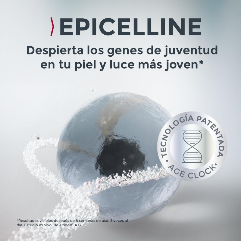 El ingrediente activo Epicelline® reactiva la memoria de los genes de la juventud de tu piel y rejuvenece las células cutáneas. Este mecanismo hace que tu piel luzca más joven de lo que es y revierte los 10 signos de envejecimiento: Firmeza Efecto lifting Reducción de arrugas Reducción de líneas de expresión Mejora el contorno Hidratación Piel Radiante Aspecto rejuvenecido Piel Uniforme Suavidad