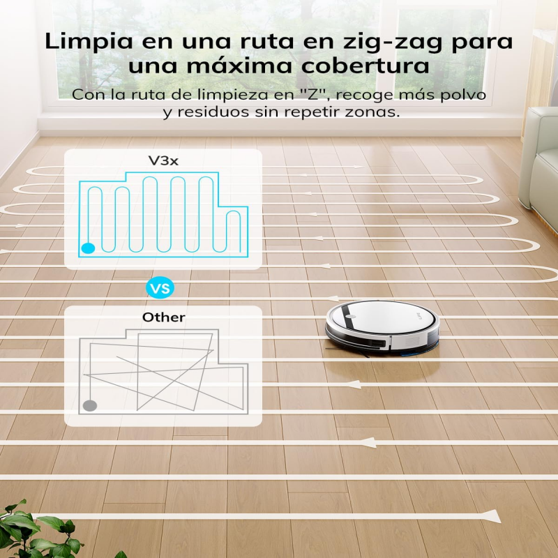 2. [Limpieza profunda en alfombras] El robot aspirador y trapeador V3x aumenta automáticamente la succión hasta 3000Pa al identificar inteligentemente las alfombras, detectando un aumento en la fricción entre el cepillo principal y el suelo. Ideal para eliminar la suciedad incrustada y los residuos ocultos en las alfombras. También es apto para suelos duros como madera, baldosas, laminados y alfombras.