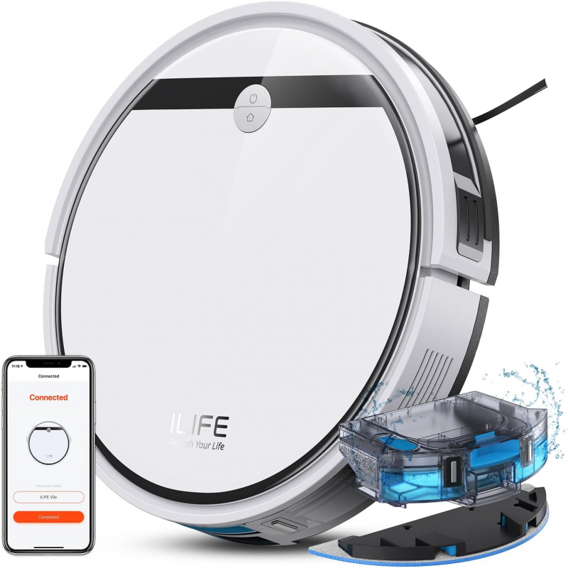 4. [Control conveniente a través de la app] Controla completamente tu ILIFE V3x con la app ILIFEHOME para programar tareas de limpieza, ajustar la succión, el volumen de agua para el trapeado, detección de fallas y recordatorios de mantenimiento. Compatible con Alexa y Google Home para un control inteligente, y soporta solo WiFi de 2.4GHz.