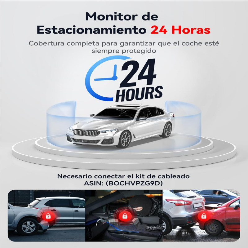 [Monitor de Estacionamiento Triple para Máxima Protección] La dashcam para auto REDTIGER incluye dos modos de estacionamiento para proteger tu vehículo después de usar el kit de cableado adicional. Los modos de lapso de tiempo y detección de impactos capturan incidentes mientras estás estacionado, y las cámaras frontal, trasera e interior brindan cobertura completa. Protege tu vehículo todo el día