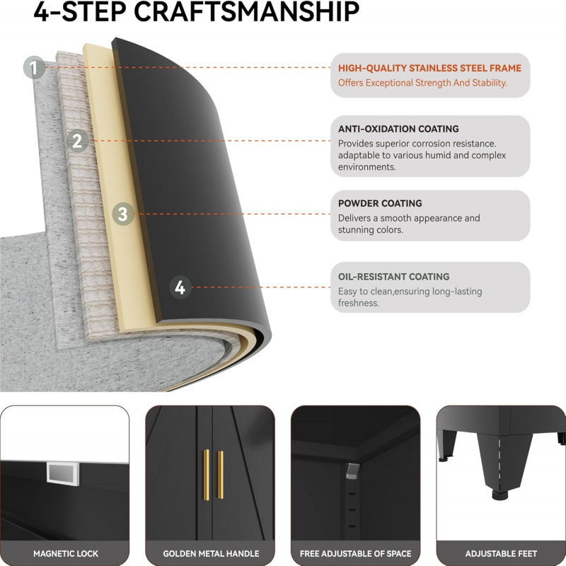 Almacenamiento flexible: el interior cuenta con 4 estantes ajustables y un cajón, lo que te permite personalizar tu almacenamiento para adaptarse a tus necesidades.De la marca