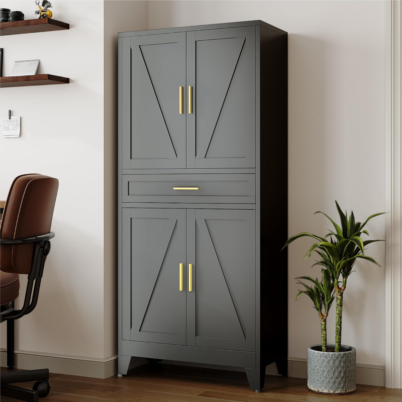 Versatilidad: el archivador de acero estilo granero de 71 pulgadas es una opción de almacenamiento práctica clásica para cualquier habitación, desde oficinas en casa hasta baños, proporcionando un montón de espacio para documentos, utensilios de cocina y más mientras añade encanto rústico.