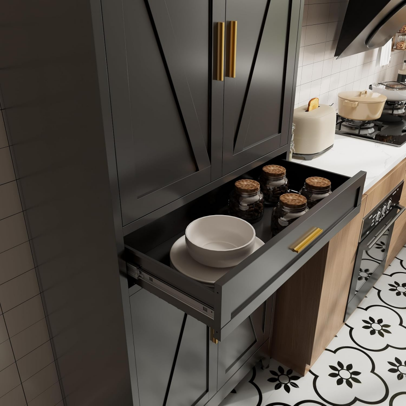 Washsemba - Armarios de metal de 71 pulgadas con cajón y 4 estantes ajustables, con 4 armarios de cocina blancos de puerta grande, gabinetes de comida de metal para el hogar, cocina, comedor/sala de estar (negro)