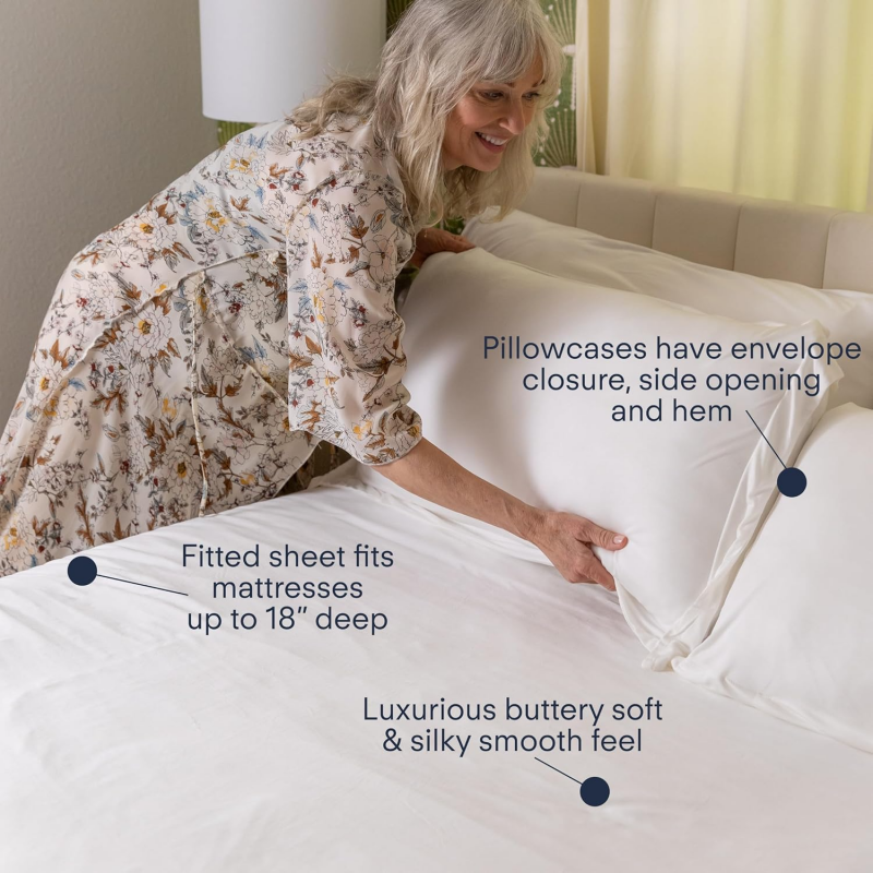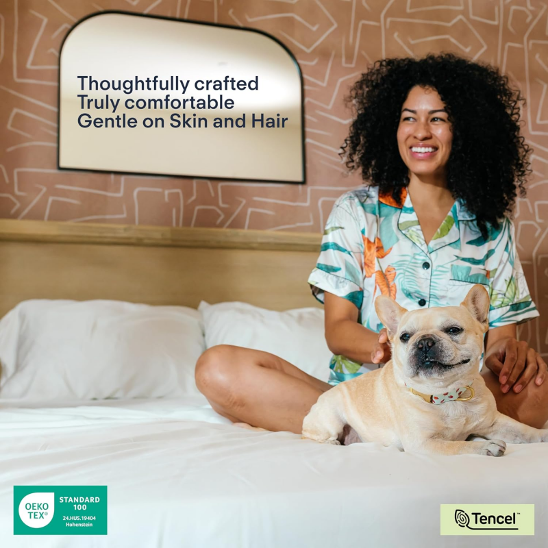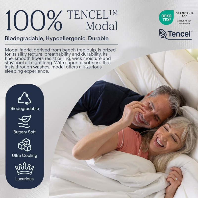 Estas sábanas de punto están hechas de 100% modal TENCEL, una fibra de alta resistencia regenerada a partir de árboles de haya. Las sábanas son ecológicas, ya que están hechas de madera de haya sostenible que utilizan un 10-20% menos de agua que el algodón.