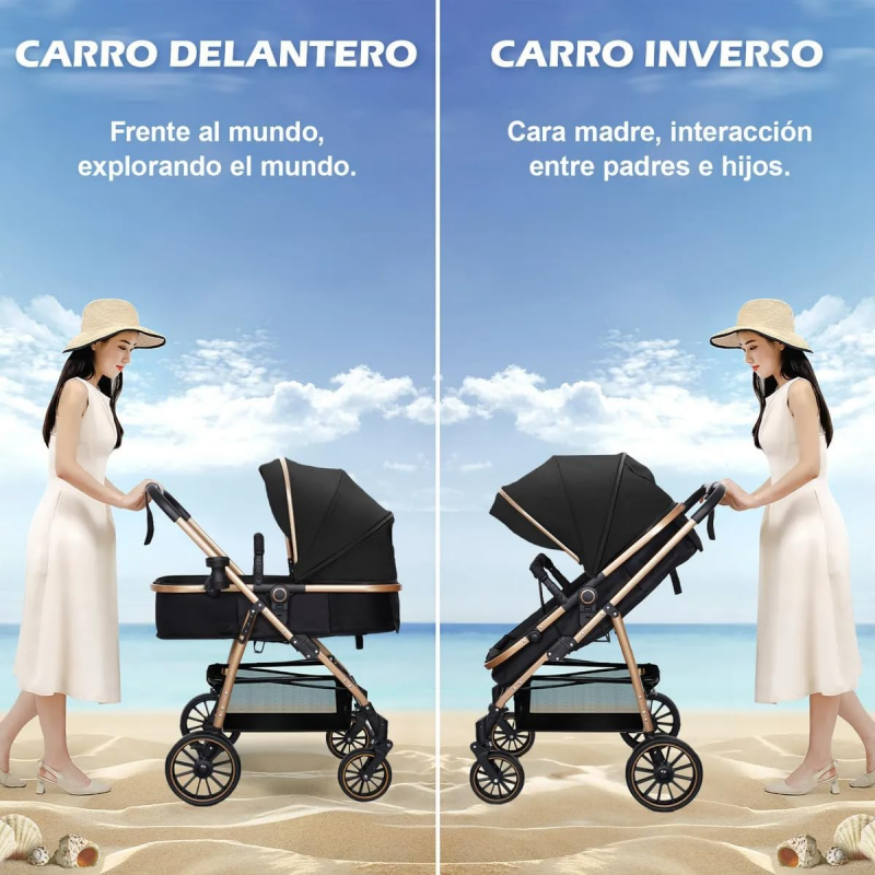 ✅Asiento reversible con modo cara a madre: El cochecito cuenta con dos modos de despliegue: mirando hacia el mundo para que el bebé explore su entorno, o en posición inversa cara a madre para fomentar la interacción y el vínculo afectivo durante los primeros meses. Esta flexibilidad promueve una experiencia más segura y cercana entre padres e hijos en cada paseo