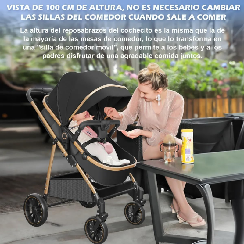 ✅Comodidad superior con ajuste multiángulo y alto paisaje: El respaldo se reclina en 3 posiciones, adaptándose desde el modo completamente acostado para recién nacidos hasta el modo sentado para niños de hasta 3 años. Su innovador diseño de visión alta a 100 cm de altura eleva el ángulo visual del bebé, mejora la ventilación y permite que el cochecito funcione como silla de comedor móvil, facilitando las comidas fuera de casa sin necesidad de cambiarlo a una silla alta