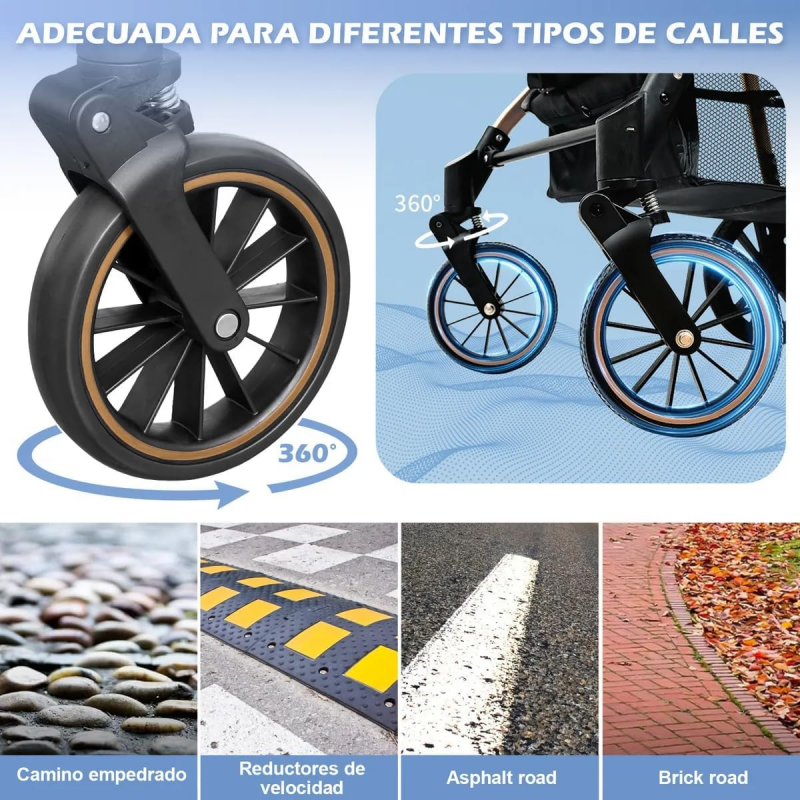 ✅Todo terreno con protección total y gran capacidad: Equipado con ruedas de EVA y amortiguadores con resorte en las ruedas traseras, sistema de absorción de impactos y freno de un pie, garantiza un paseo suave en calles empedradas, reductores de velocidad, asfalto y ladrillo. Incluye capota con protección UV, visor de ventilación y tragaluz para una vista completa. Cuenta con reposabrazos desmontable, correa de muñeca de seguridad, cesta inferior amplia y bolsa de almacenamiento trasera, brindando todo el espacio necesario para los esenciales del bebé
