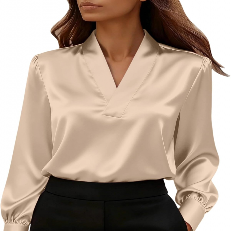 Blusas de satén para mujer, camisas de oficina, tops de trabajo, tops para salir