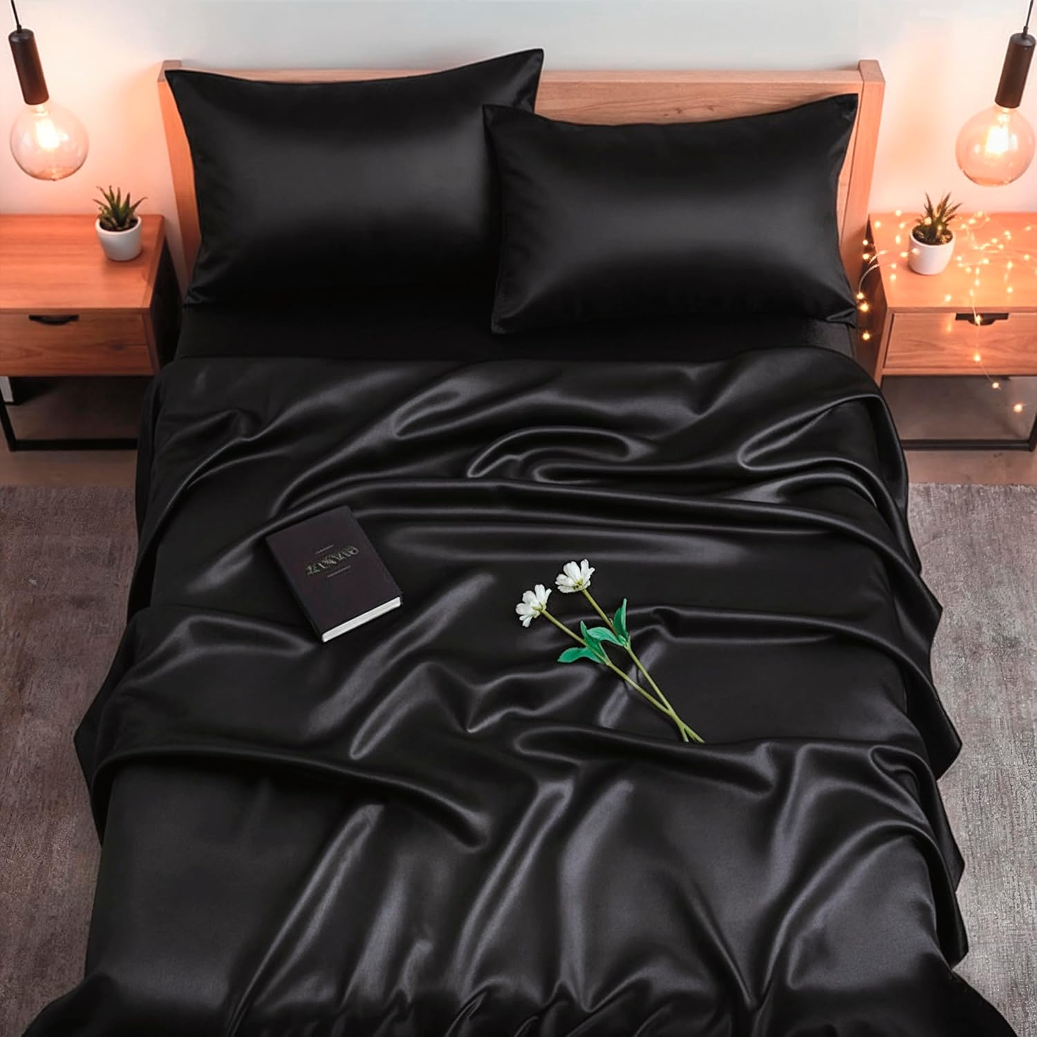 Colorado Home Co - Juego de sábanas de Seda de Morera 100% Pura, con sábana Plana, sábana de cajón y 2 Fundas de Almohada con Cierre de sobre, Juego de 4 Piezas, tamaño King Size, Color Azul Noche